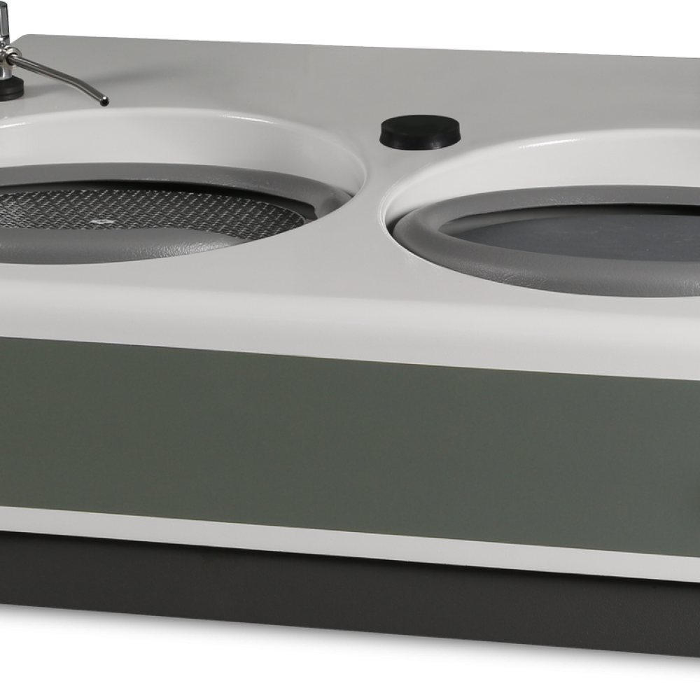 Both single and double wheel versions are suitable with Ø200, Ø250 and Ø300 mm wheels. The work wheel is powered by a 1.0 hp high torque electric motor with the ability to rotate both clockwise and counterclockwise. The latest frequency converter allows smooth speed variation (50-600 rpm) of the grinding wheel with soft start and soft stop. This makes it possible to set the optimal speed for each individual preparation process. It is an ideal choice for laboratories preparing a wide range of different materials from very small to very large.